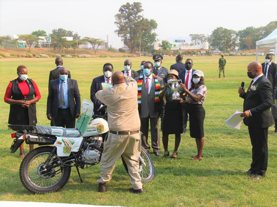 Bike handover by His Excellence the President of Zimbabwe, Dr E.D Mnangagwa. Recipient, Dares Shambare, best overall Agritex Officer from Mashonaland Central.