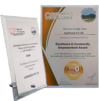 Social Corporate Responsibility through respect for wetlands earns Agriseeds top award. The Environmental Management Agency (EMA) in conjunction with The Corporate Social Responsibility Network Zimbabwe (CSRNZ) honoured Agriseeds with this top recognition at an awards ceremony on 27th November 2020 held at the HICC. Graced by the Honourable Minister Professor Paul Mavima as Guest of Honour, the event also attracted some other Government Ministers and Deputies.
